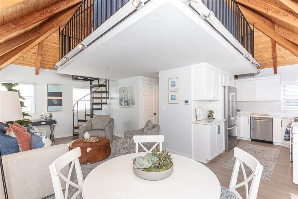 Welcome to your ultimate beachside retreat! Just steps away from the water, this beautifully renovated home perfectly embodies the relaxed, coastal lifestyle that Balboa Island is famous for. As you step through the charming Dutch front door, you’ll be greeted by a large, private deck—ideal for soaking in the sun or enjoying the peaceful surroundings. Inside, every detail has been thoughtfully updated, including fresh paint, new flooring, and a sleek remodeled kitchen complete with stainless steel appliances. The spa-like bathroom features a luxurious walk-in shower, and the entire space is bathed in natural light. This unit boasts numerous windows and skylights, creating an inviting, airy atmosphere throughout. The open-concept kitchen flows seamlessly into the spacious living area, which boasts soaring high-beamed wood ceilings and a striking wrought iron staircase leading up to the second bedroom/loft—perfect for an office, extra living space, or cozy guest room. You have a shared laundry space and to make your life even easier, water, gas, electricity, trash, and monthly cleaning service are all included with your lease. Embrace the beach life in this stunning, fully furnished move-in ready home—your perfect island getaway awaits!