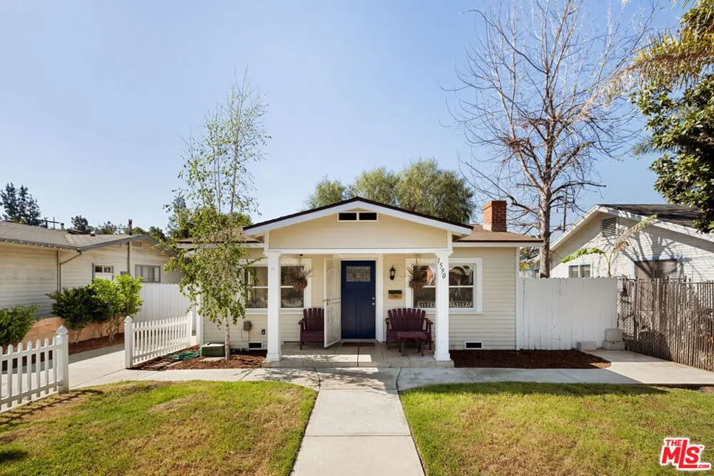 Nestled on a tree-lined street in Eagle Rock, this charming 1924 California bungalow offers character, light-filled interiors, and flexible space across a generous lot. Framed by a white picket fence, the front porch leads into a bright living area where original details are met with thoughtful updates, including hardwood floors, a decorative fireplace, and curated built-ins. The galley kitchen features new shaker cabinetry, quartz countertops, and LG stainless steel appliances. The main house includes two bedrooms and one full bath with a classic clawfoot tub and vintage-style tilework. A converted garage adds a finished rec room and a dedicated laundry area, offering added utility for creative use or storage. At the rear of the property, a well-appointed ADU is privately set beneath mature trees and includes a full kitchen, bath, and its own entrance, ideal for guests, rental income, or a private office setup. Located just minutes from Colorado Boulevard's shops and restaurants, Occidental College, and the best of Highland Park and Eagle Rock, this is a versatile opportunity for end-users or investors alike.
