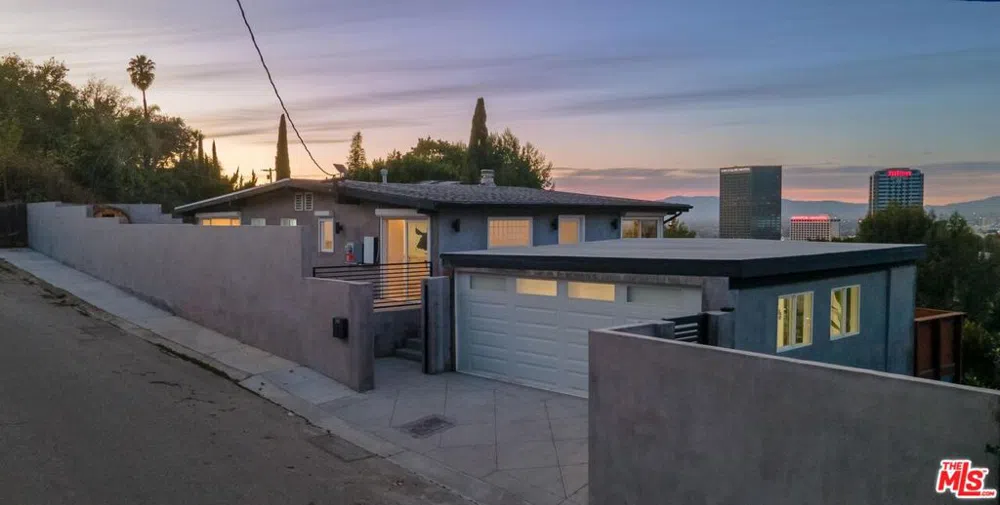 Experience classic Hollywood Hills living in this stylish and updated Midcentury retreat, complete with a spa, outdoor sauna and stunning west-facing views in every direction. Centrally located and tucked on a serene street, this 3-bedroom, 2-bathroom home, featuring an additional detached bonus room, offers a seamless blend of style and convenience. Enjoy panoramic city and expansive mountain views from the living room or relax in the outdoor tub, taking in the sunset's majestic glow. As a bonus, a versatile converted garage provides flexible space for an office, lounge, recording/podcast studio, gym, or guest bedroom, complete with its own patio, views and AC. After a night out or a long day, unwind on two private decks with a jacuzzi and sauna, or retreat to the zen like calm of the guest bedrooms. Hand selected upgrades include Nest Thermostat, Tesla Solar panels, stainless steel appliances, dual-pane glass sliders, 8' windows, and all-weather black out blinds. Lastly, the property is set on a 6456 square foot, street-to-street lot, the property features ample possibilities for creative development and expansion. Located in the sought-after Valley View Elementary School District. This meticulously maintained home combines modern amenities with a welcoming atmosphere. Don't miss your chance to own this hillside sanctuary.