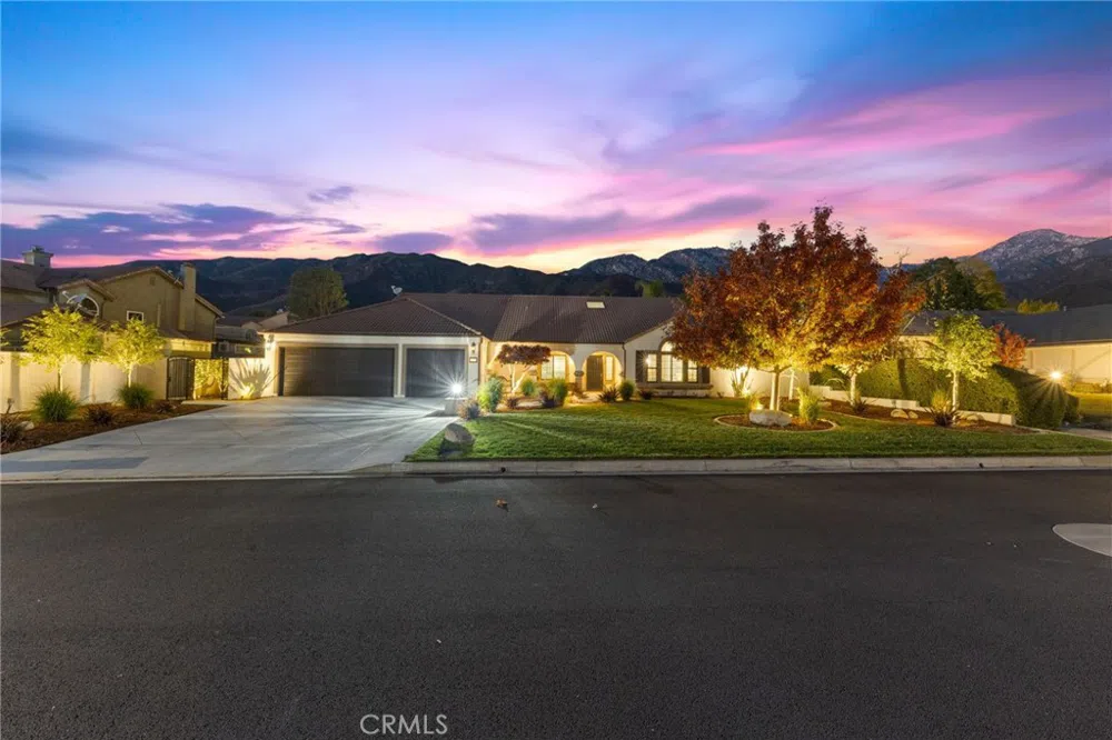 Enjoy a private retreat with an unobstructed and stunning backdrop of the San Gabriel mountains. This beautifully renovated one-story home sits on a quiet street in San Antonio Heights. As you approach this smooth stucco home, you will notice a beautifully landscaped front yard which features a new concrete driveway and porch. As you enter this home, you will find elegant engineered hardwood floors, designer interior paint, vaulted ceilings, crown molding, recessed lighting, and plantation shutters. The spacious kitchen has been upgraded with travertine flooring, and also has a granite countertop and a six burner stove, stainless steel appliances, and white shaker cabinets. The oversized primary bedroom features a recessed tray ceiling, a large bathtub, a walk-in closet, and beautiful wood cabinetry. The home also has some new dual pane Anderson windows and an upgraded indoor plumbing system. French doors in the family room open up to a magnificent and recently modernized backyard that showcases views of the mountains. Beautiful pavers sweep throughout the backyard and surround a saltwater pool that features Pebble Tech coating, a Baja shelf, a spa, new LED lighting, and remote-controlled pool equipment. Picture yourself exiting the pool and warming yourself by the outdoor gas fire pit. A large, covered patio area makes it ideal for entertaining. You will also enjoy the professionally designed, drought resistant low maintenance landscaping with partial underground irrigation and decomposed granite along with a wide variety of dwarf fruit trees. During the evenings, you will enjoy the beautiful illumination of the front and backyard. The three-car garage has been updated with white cabinets, epoxy flooring and above ground storage space. This property has underground utilities and a sewer system.